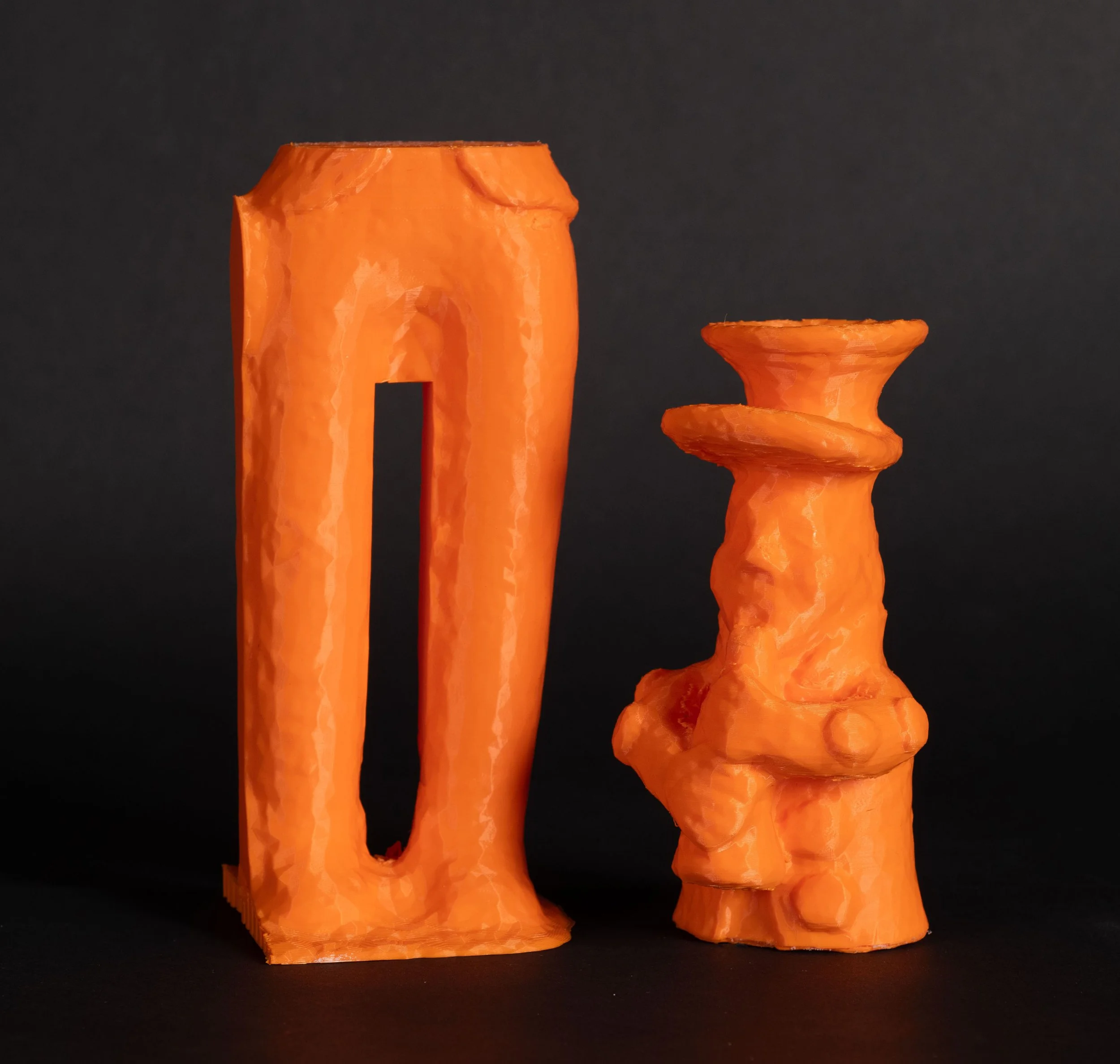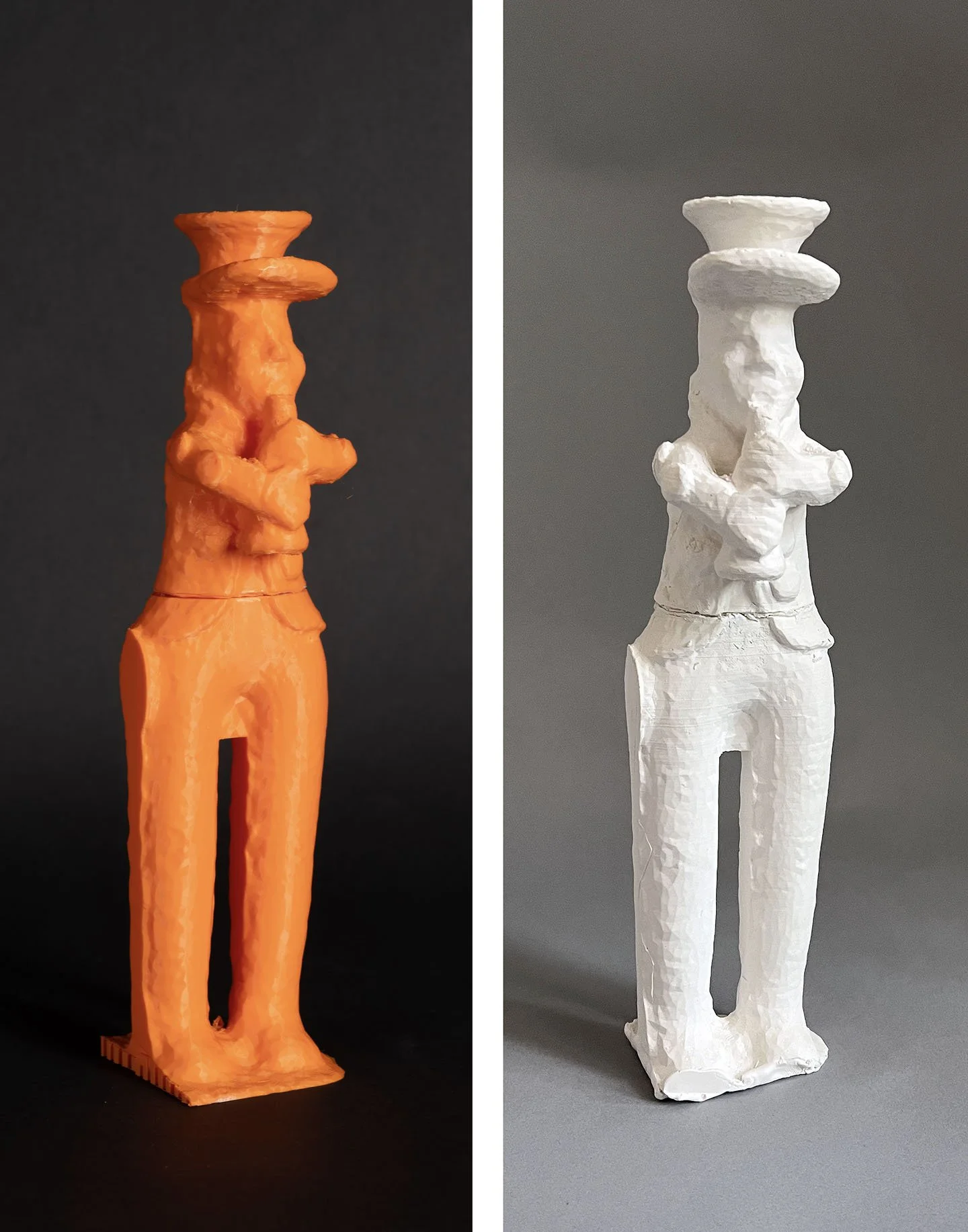 Top: The two halves of the intermediary figure, printed from PLA (polylactic acid) polymer using an Ultimaker S3 3D Printer.