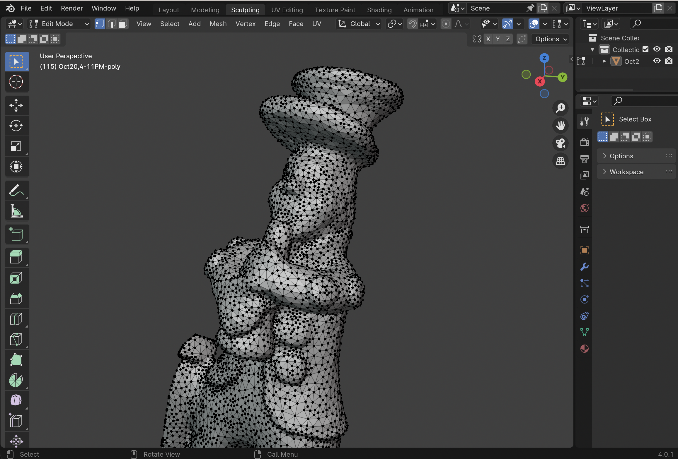 After scanning a 3D object, irrelevant geometry and data points need to be deleted. The .OBJ file is brought into a 3D visualization and editing software (I used Blender, a free and open-source product). The 3 band members not needed for replication were deleted, leaving only the band member to be 3D printed. Finally, the model was made “watertight”, a term used to describe a single, entirely closed volume that would hold water if filled.