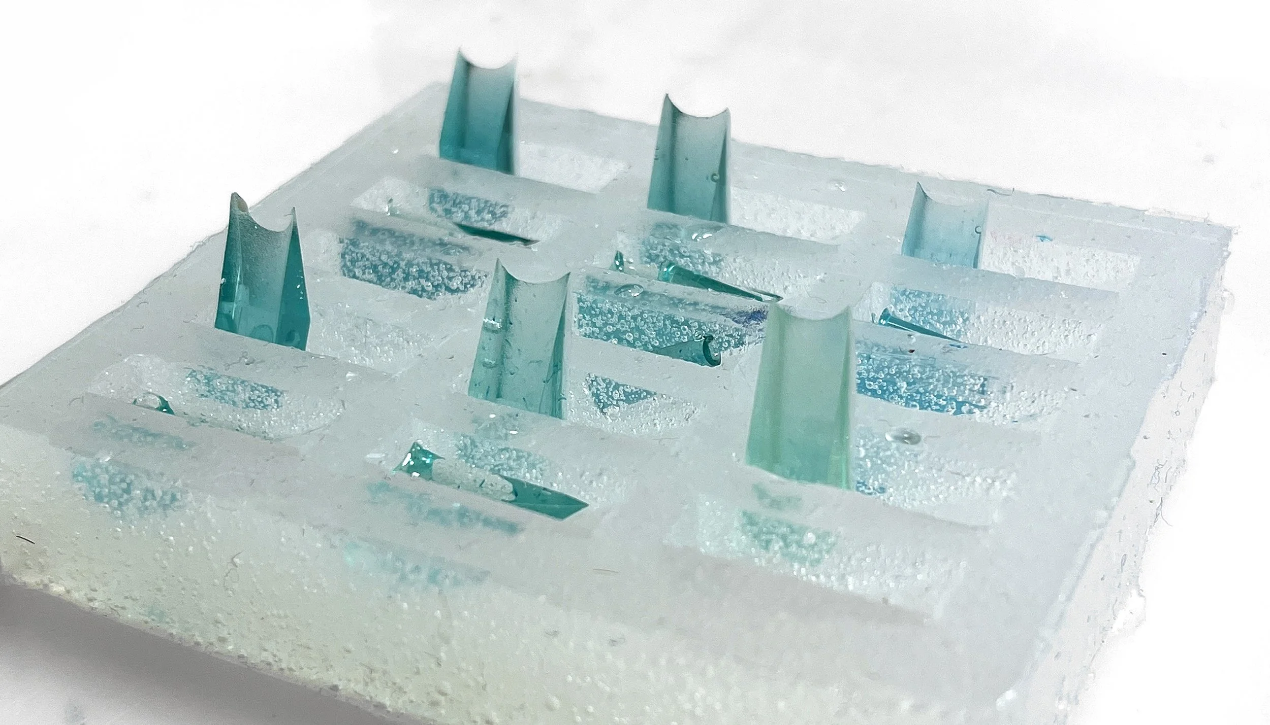 The vessel was then reassembled. First, the break edges of all fragments were cleaned before a ~30% w/v concentration of adhesive resin was brushed onto the break edges for piece-by-piece reassembly.