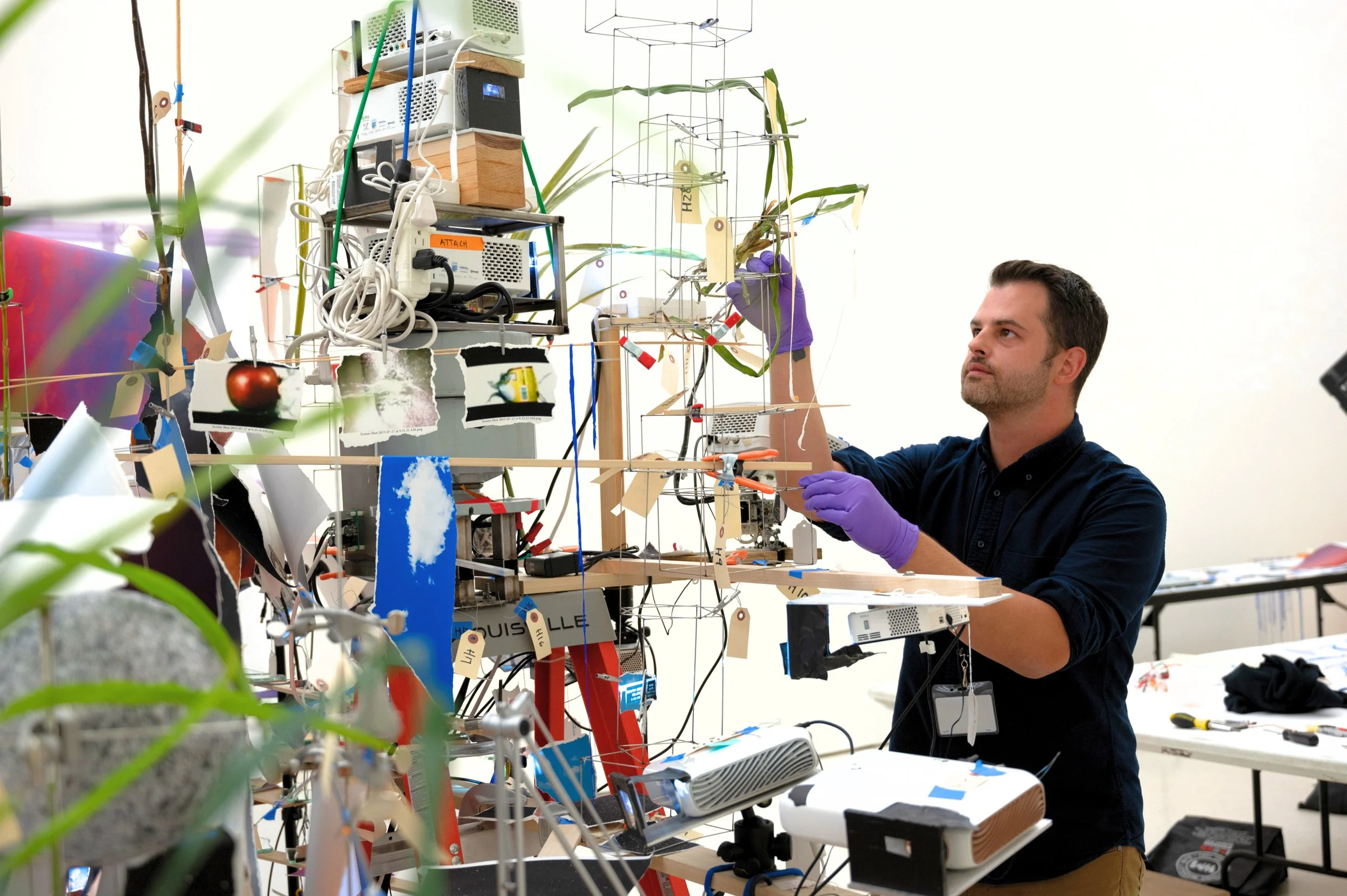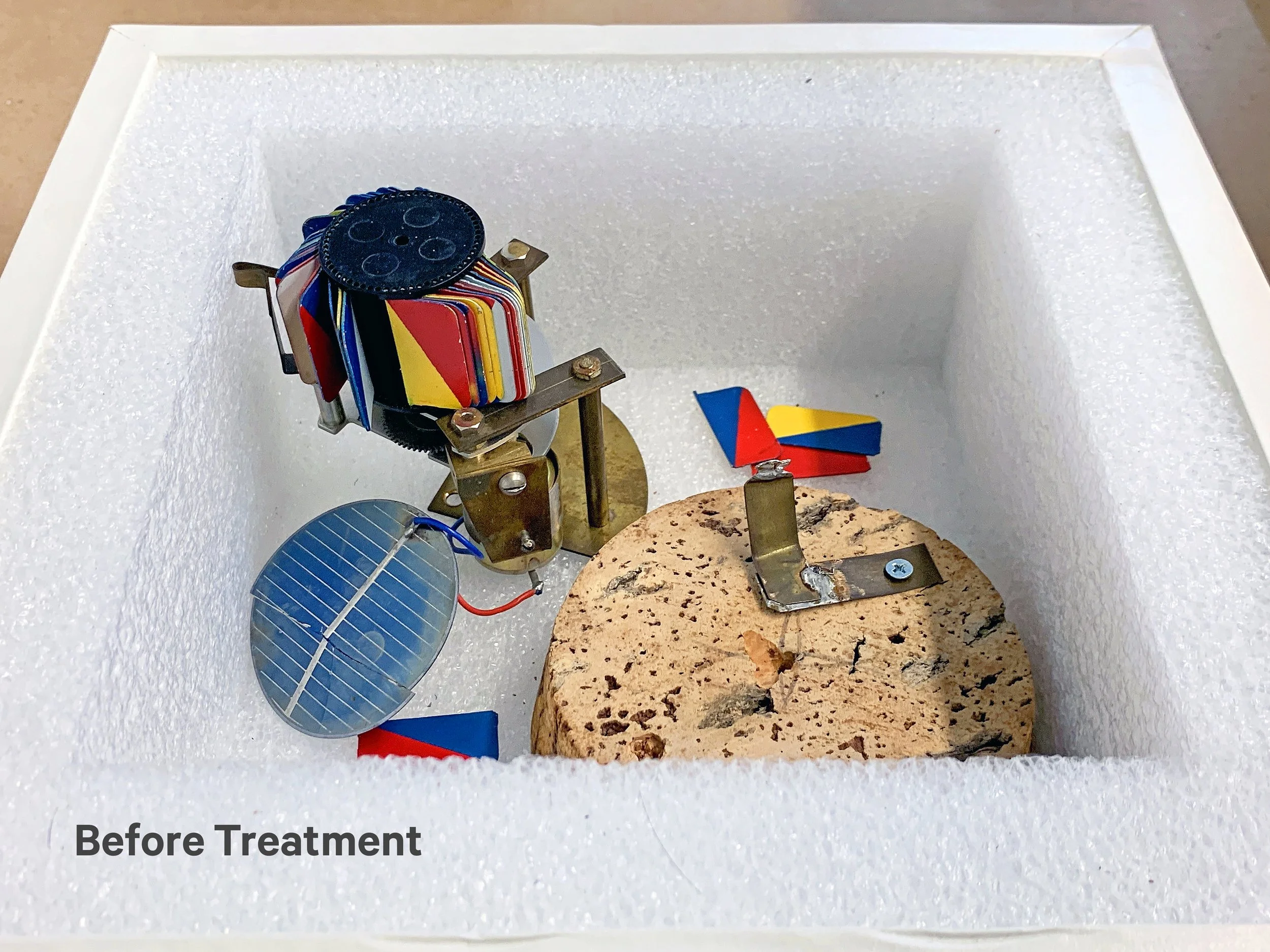 I supported the objects, media, and paper conservation teams during the 2022 and 2023 installations of Sarah Sze’s mixed-media sculpture Timekeeper (2016).