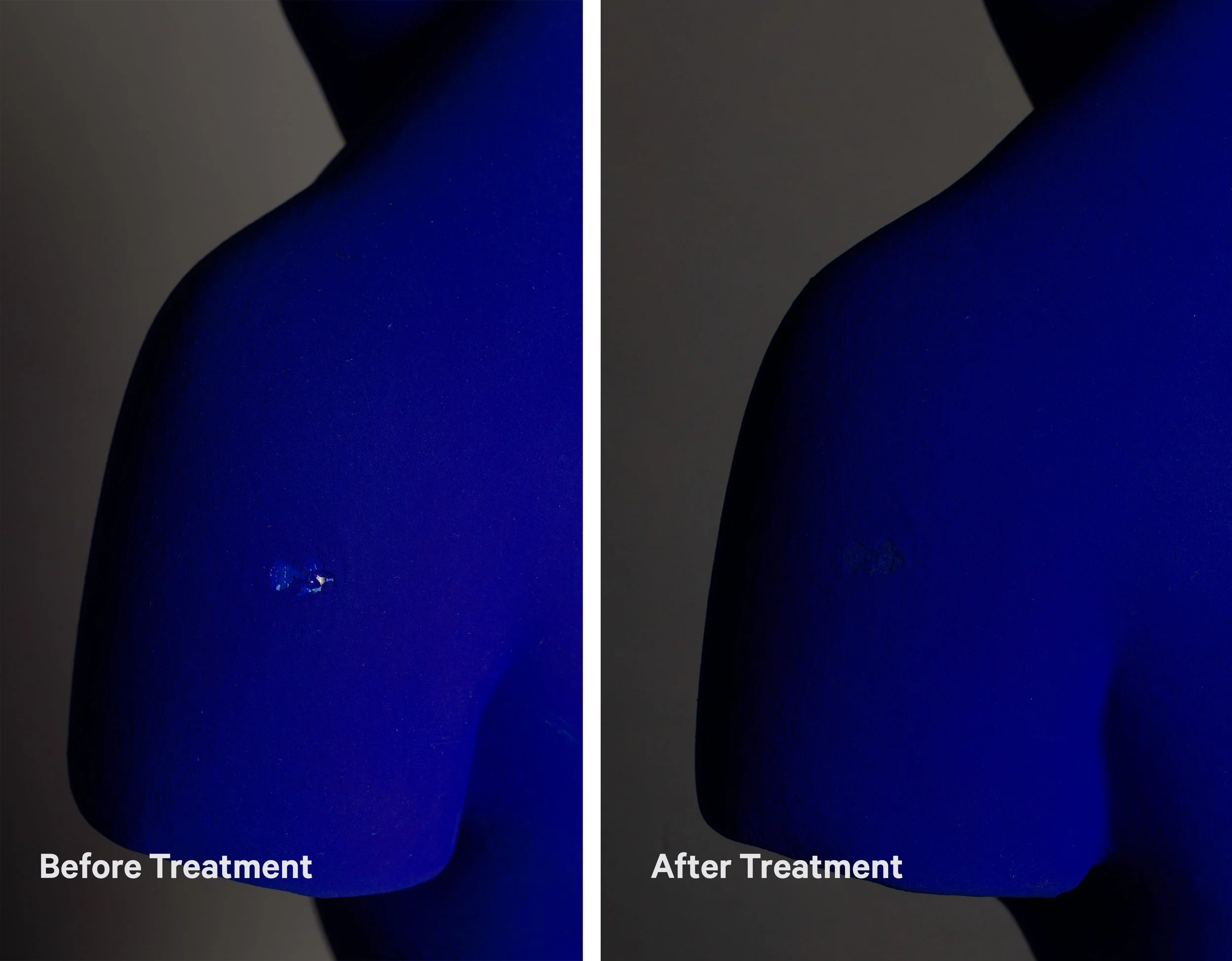 Above: A significant loss to the Venus’ shoulder was treated locally using a modern International Klein Blue (I.K.B.) formulation.