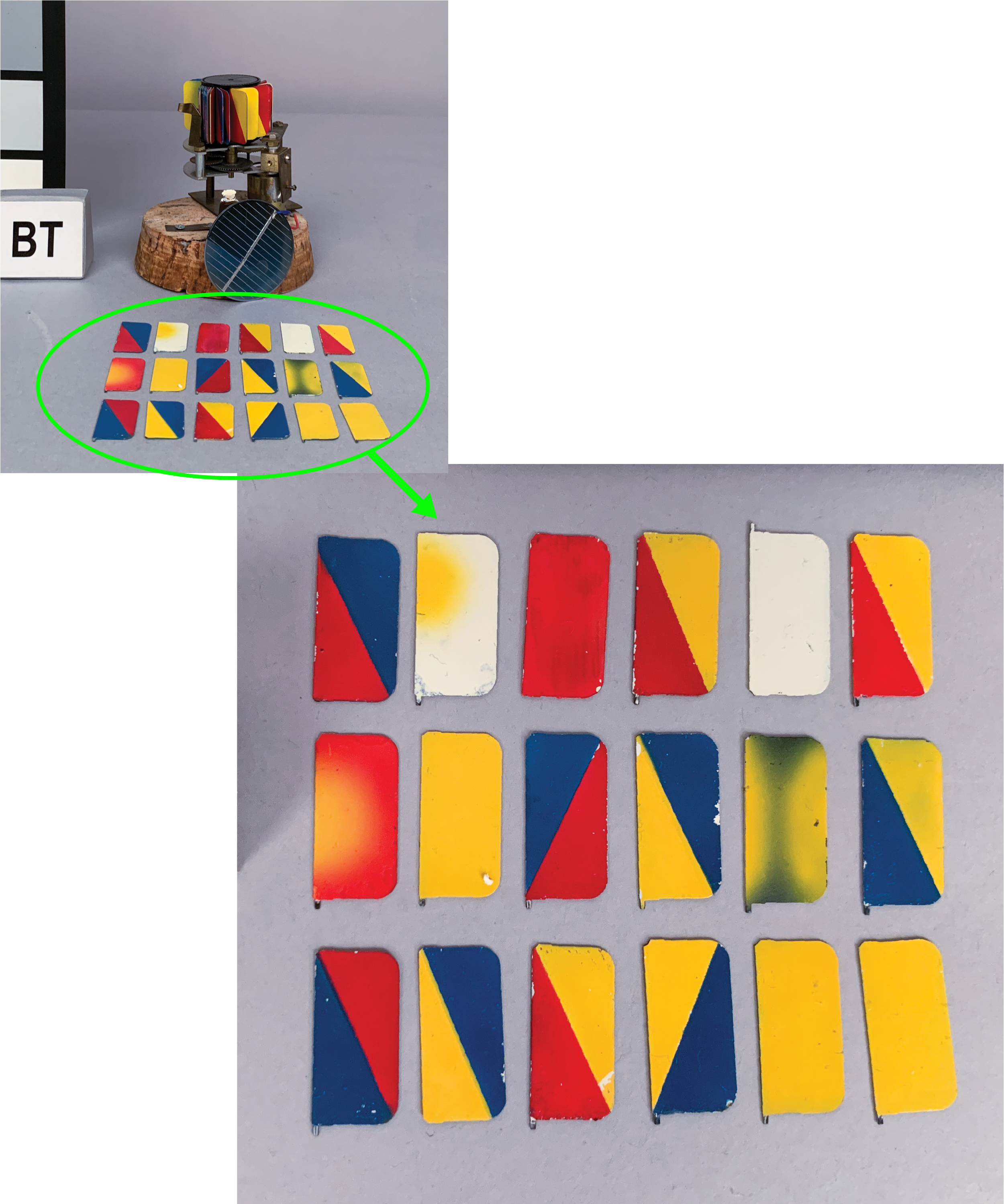 After determining that the solar cell was nonfunctional, a custom backing plate was laser-cut out of aluminum and the cracks were repaired with an optically clear conservation-grade epoxy.