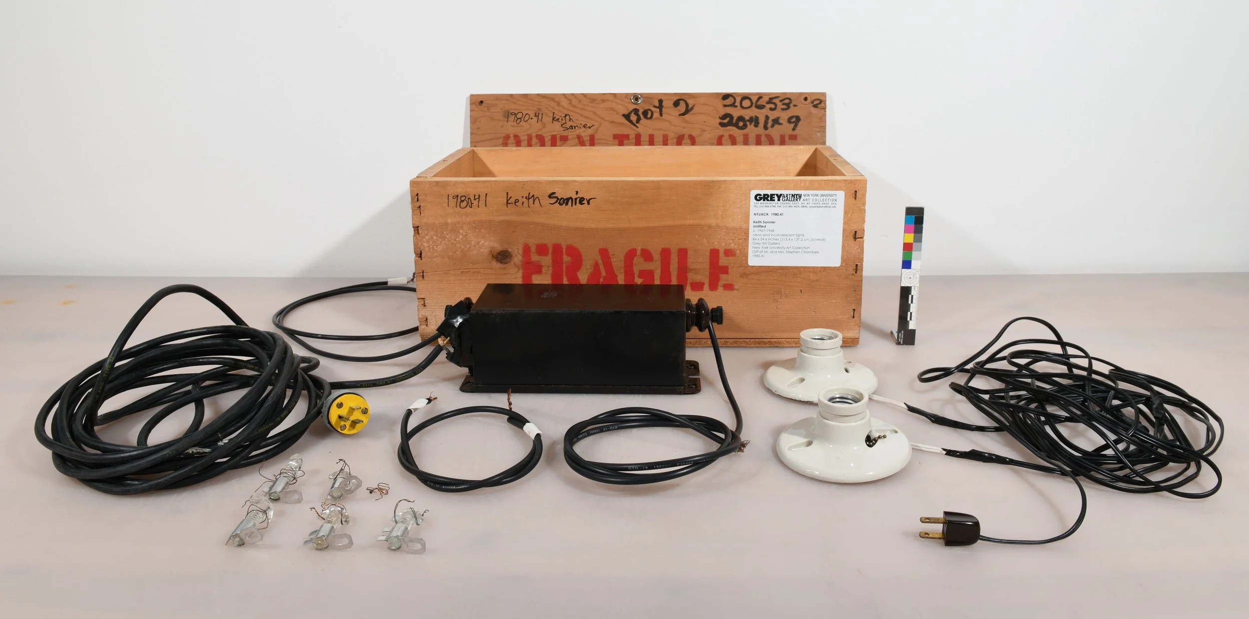 At some point after New York University’s Grey Art Gallery acquired Keith Sonnier’s Untitled, the two neon tubes which make up the work’s major sculptural impact had shattered. I consulted with the artist’s estate and a neon fabricator to recreate the broken glass tubes and allow the work to be shown for the first time in nearly five decades.